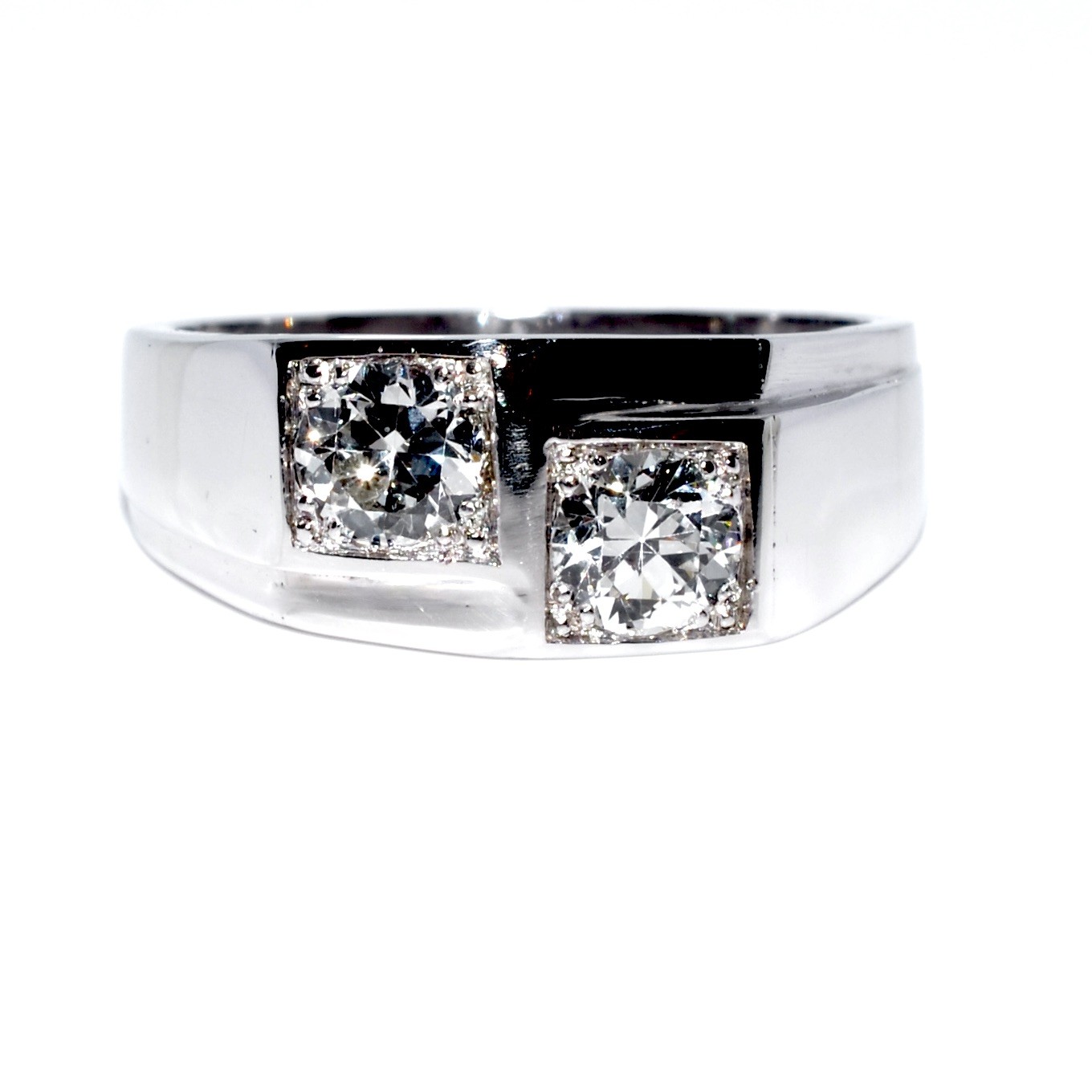 This elegant Art-Deco ring is set in its center with two old-cut diamonds weighing approximately 0,80 carat together.