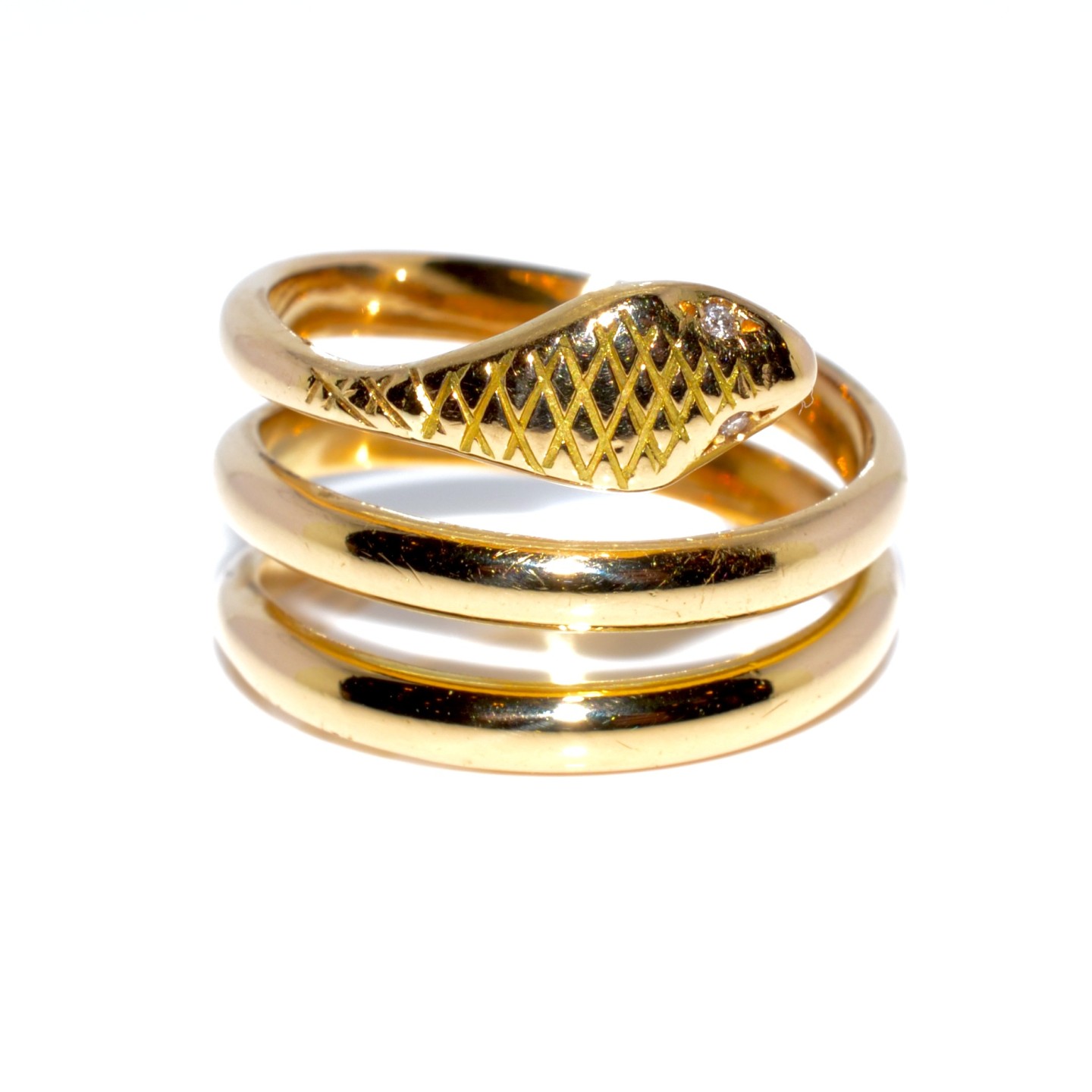 Hide pricesWe love this ring. It represents a snake whose finely chiseled head is set with an old cut diamond. This antique ring is very dense and pleasant to wear.