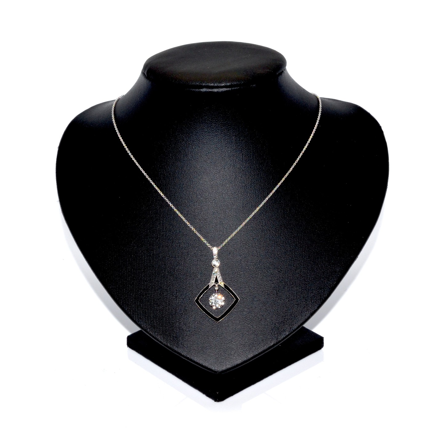 Hide pricesThis pretty Art-Deco pendant is set in the center with an old-cut diamond in a hinged bezel.
