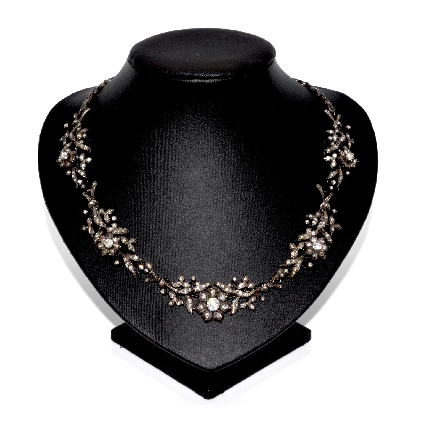 Hide pricesThis sublime antique drapery necklace is wonderfully set. It is very pleasant to wear because its links are flat on the skin side. The rose cut diamonds have a beautiful brilliance and the contrast with the blackened silver gives it a nice touch.