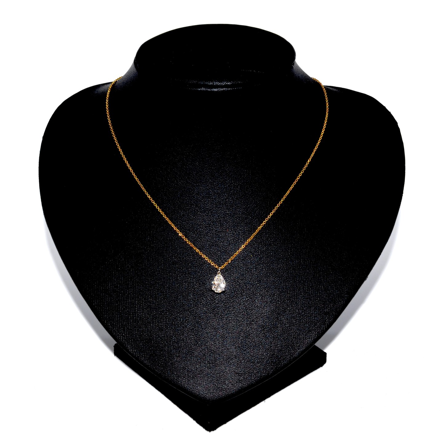 Hide pricesThis 18-carat gold pendant is set with an exceptional pear-cut diamond weighing 1.01 carat and certified by the prestigious GIA laboratory as having E color and SI1 clarity. The chain is in yellow gold and the diamond bezel in white gold.