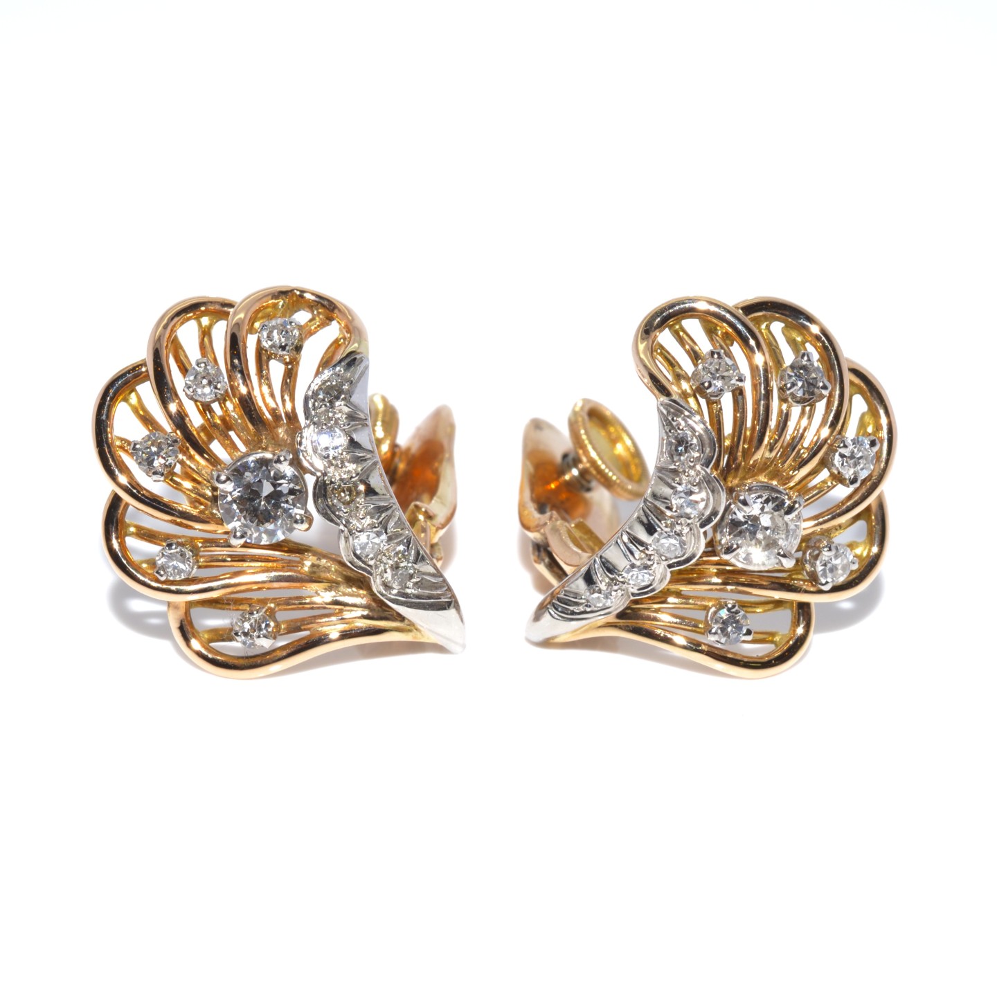 Hide pricesThis lovely pair of Vintage earrings in 18K yellow gold an platinum is each set with small old-cut diamonds. Clip system for non-pierced ears (a system for pierced ears can be added on request).