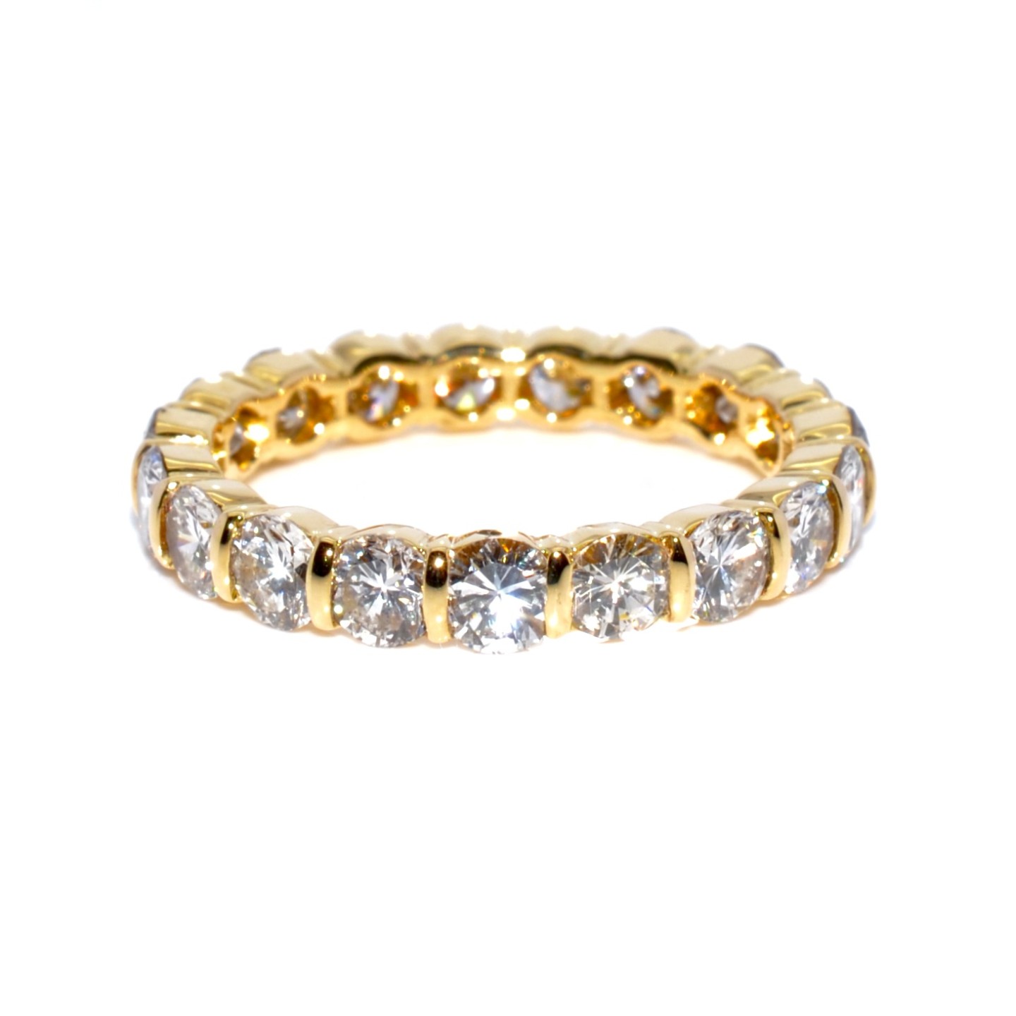 Hide pricesThis beautiful 18K yellow gold wedding ring is set with 19 brilliant-cut diamonds of a beautiful quality for a total weight of approximately 2,80 carat.